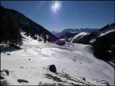 Wir genossen die Aussicht, riefen kurz mal zu Hause an :-) und machten uns nach einer Viertelstunde wieder auf den Rückweg. Hinunter war es dann gar nicht so einfach wie gedacht. Natürlich hat's mich das ein oder andere Mal so richtig hingelassen in den Schnee ... aber das gehört dazu. ;-) Nach einer halben Stunde waren wir wieder auf dem normalen Weg angekommen, mehr rutschend als gehend. Für den Rückweg zum Auto benötigen wir nochmals gut eineinhalb Stunden, zwischendrin noch eine kleine Abschluss-Rast mit Blick auf den herrlich glitzernden Schnee eingelegt ...