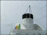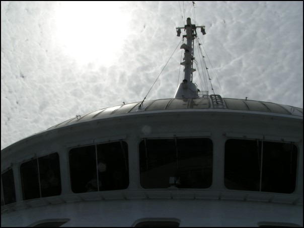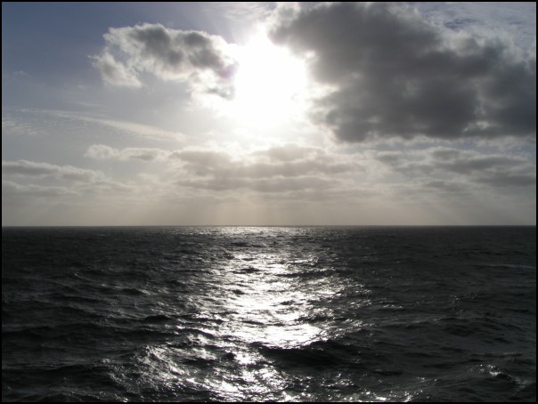 Doch kurz nach dem Aufstehen wird mir mulmig - wir schippern immer noch über den Atlantik. Die Wellen haben in der Nacht bis ins 6. Deck hochgeschlagen; die Fensterscheiben sind pitschnass. Auch Toni hat ein komisches Gefühl im Magen und so gehen wir erst einmal raus auf Deck 7, um frische Luft zu schnappen - und den Wellengang zu beobachten. An diesem Morgen lacht uns die Sonne ins Gesicht; doch ich kann es noch nicht so richtig genießen. Da wir am Vortag schon das Thema "seekrank" besprochen hatten, fiel mir wieder ein, dass es am leeren Magen liegen könnte und so machen wir uns auf den Weg in den Speisesaal. Dort ist die Hölle los. Das halbe Schiff ist auf den Beinen und Plätze sind nur noch wenige vorhanden. Doch schließlich finden wir zu Sechst doch noch ein kleines Eckchen.