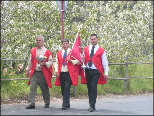 Unser Weg führt uns zunächst über enge Straßen und kleine Hügel zum bekanntesten Weinanbaugebiet Estreito de Câmara de Lobos. Immer wieder überraschen uns wundervolle Aussichten über die Insel und immer wieder kommen wir durch kleine Siedlungen hindurch. In einer findet gerade ein großes Kirchen-Fest statt - was für ein reges Treiben! Vom Baby bis zum Uropa ist hier alles auf den Beinen! ;-) Estreito de Câmara de Lobos liegt herrlich eingebettet zwischen Terrassenfeldern, auf denen Bananen und Weinreben wachsen - 350 bis 500 m über dem Meer. Dieser Ort wirkt sehr idyllisch, ist hier eigentlich nur am Sonntag-Vormittag die Hölle los, wenn der große Markt stattfindet, auf dem hauptsächlich Obst und Fisch angeboten werden.