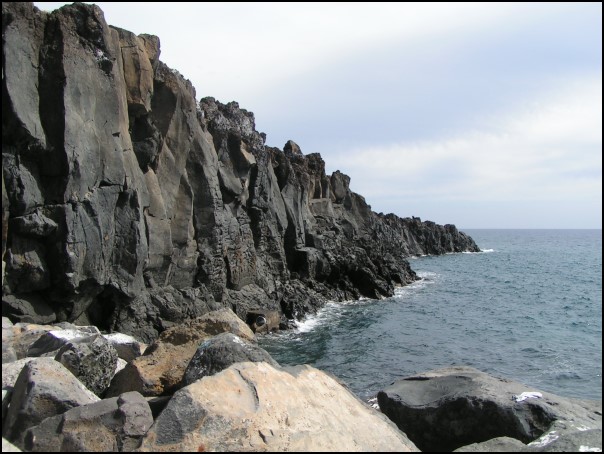 Wir spazieren zur Küste vor und haben zunächst Probleme, den berühmten "Finger Gottes" zu sehen. Doch nach und nach können wir ihn erkennen ... wenn auch nur spärlich.