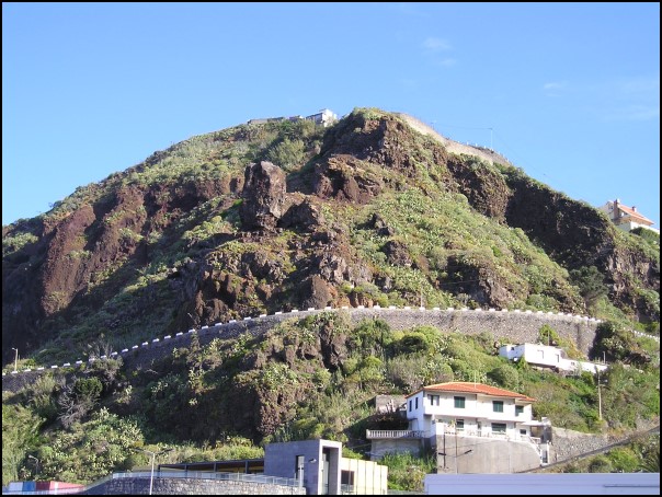 Etwas angeheitert geht's nach gut zwanzig Minuten schließlich wieder weiter zum Fischerdorf Câmara de Lobos. Dieser Ort teilt sich in zwei Ortsteile westlich und östlich einer kleinen Felszunge. Das Zentrum beherbergt die Pfarrkirche São Sebastião aus dem 16. Jahrhundert und viele nette kleine Gassen. Wir spazieren ein wenig durch diese und treffen hier immer wieder auf Einheimische, die es sich vor ihrem Haus gemütlich machen, Karten spielen oder einfach ins Leere blicken. Ein idyllisches Bild, welches deutlich vom Süden zeugt. ;-) Besonders schön ist aber der Hafen, wo wir uns ein wenig in die Sonne setzen und den Wellen zusehen. Auf dem dunklen Sand liegen malerisch die vielen Fischerboote; rundherum die portugiesische Idylle.