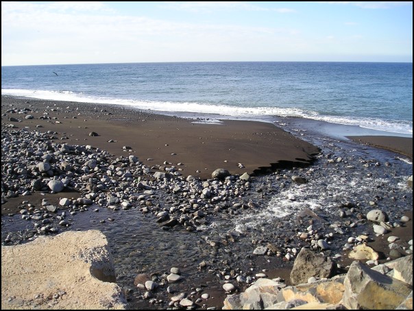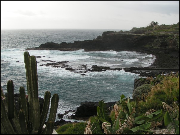 Zu Fuß geht's schließlich weiter zum Meerwasserschwimmbecken Charco Azul, wo allerdings nicht viel los ist. Nach ein paar Schritten stehen wir plötzlich vor einer "Bananenpackerei", wo die Leute beschäftigt sind, die Bananen von der Staude abzutrennen, zu waschen und schließlich in Kisten zu verpacken. Neugierig wie wir sind, dürfen wir einmal quer durch die Lagerhalle gehen und bekommen zum Abschluss noch eine gerade frisch gepflückte Banane. Schmeckt die guuuttt ...!!!