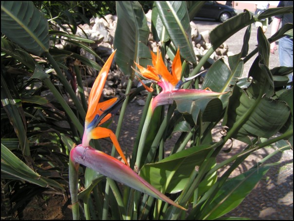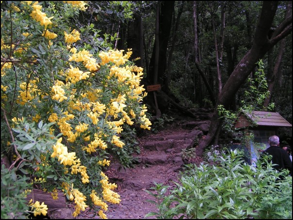 Nach rund zwanzig Minuten fahren wir weiter in die Lorbeerwälder Los Tilos. Hier steigen wir aus und der Reiseleiter erklärt uns die verschiedenen Eukalyptusbäume. Die Wälder gleichen einem wahren Urwald; Wege sind hier kaum welche zu finden. Irgendwie wirkt hier alles so mystisch ... Zwischen den grünen Bäumen finden wir immer wieder knallbunte Blumen, die unter diesem ganzen "Grün" einen tollen Farbenklecks darstellen.