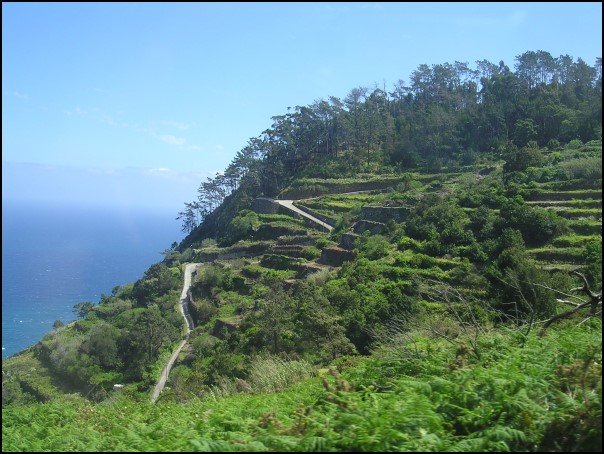 Weiter geht's ins Inselinnere nach Jardim da Serra, ein recht ursprüngliches Dörfchen Madeiras. Von hier aus haben wir einen wunderschönen Panoramablick über das Nonnental Curral das Freiras und auf die Südküste. Der Ort Curral das Freiras auf 500 m Höhe liegt zwischen hochaufragenden Steilwänden und diente den Ordensschwestern des Convento Santa Clara Mitte des 16. Jahrhunderts Schutz vor den häufigen Piratenüberfällen. Bis 1959 war dieser Teil der Insel nur über schmale Fußwege erreichbar, doch nach dieser Zeit wurden ein paar Straßen errichtet und seitdem ist es eines der beliebtesten Ausflugsziele für Touristen. Beliebt ist es u. a. auch wegen der vielen aus Esskastanien hergestellten Köstlichkeiten, wie z. B. Kastaniensirup, -likör und -kuchen. Blicken wir zur Südküste, können wir die beiden Städtchen Boca dos Namorados und Quinta Grande erkennen, die ebenfalls zwischen Terrassenfeldern eingebettet liegen.