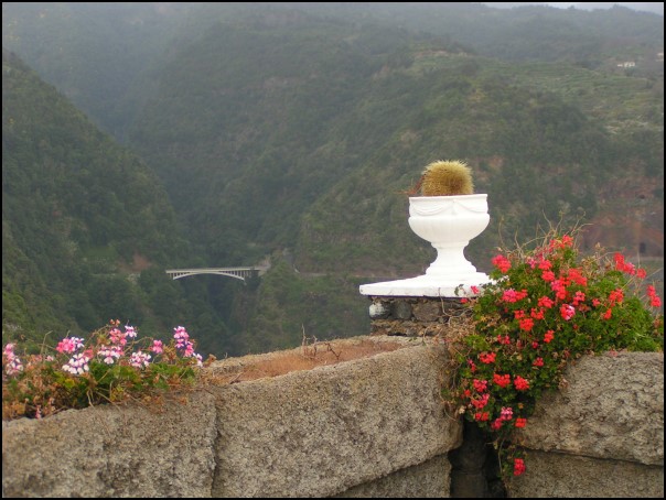 In São Vicente lässt uns der Busfahrer im oberen Teil des Dörfchens raus und wir spazieren die kleinen Hänge hinter zum Marktplatz, welcher mit den weiß gestrichenen Häusern und über und über mit Blumen behangenen Balkonen sehr idyllisch wirkt. Selbst der Friedhof (siehe Foto) gleicht einem Blumenmeer und strahlt im Gegensatz zu vielen deutschen Friedhöfen Wärme und Zufriedenheit aus.