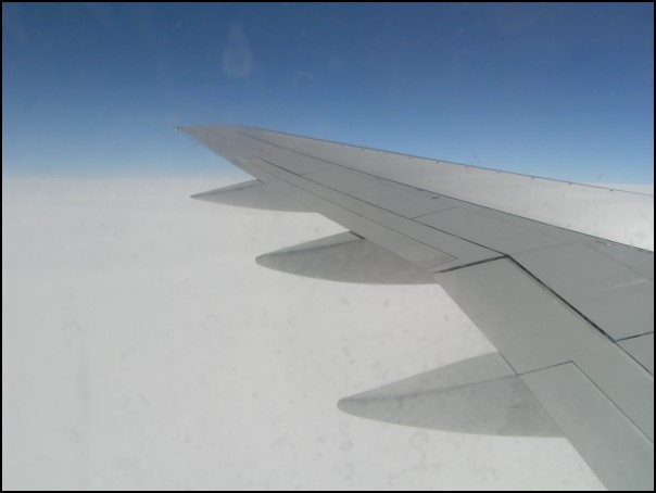Kurz nach 13 Uhr geht's dann aber auch schon los und die Maschine der Condor steigt auf in den Himmel. Schnell lassen wir den Alltag hinter uns und widmen uns unseren Büchern und Zeitschriften. Doch der Flug verläuft alles andere als ruhig und wir kommen immer wieder in starke Turbulenzen. Etwas lächerlich sind die Worte des Piloten: "Sehr geehrte Damen und Herren, machen Sie sich keine Sorgen; das Flugzeug kommt mit den Turbulenzen klar." - Ganz im Gegensatz zu den Passagieren; denn einige rutschen nervös auf ihren Plätzen herum und manch andere haben mit dem gerade ausgeteilten Kaffee zu kämpfen. So auch Toni, der nach einem Luftloch den Kaffee auf seiner Hose wieder findet. ;-)