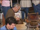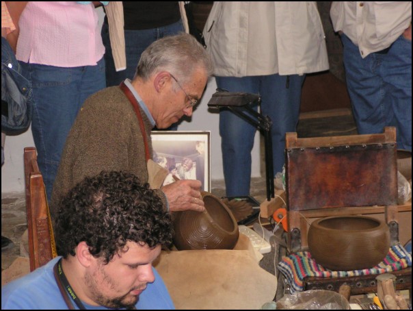 Kurz zuvor halten wir jedoch noch einmal beim kleinen Töpfereizentrum Molino in Hoyo de Mazo an, wo uns der Reiseleiter durch die herrlichen Gärten dieser Anlage führt. Blumen, soweit man sehen kann - ein wahres Paradies erwartet uns hier; ein kleiner Hund guckt immre wieder frech um die Ecke. Im Anschluss an diesen kleinen Spaziergang gelangen wir in die Werkstatt der Töpferei, wo die drei Besitzer gerade mitten in ihrer Arbeit stecken. Dieser Familienbetrieb hat es sich zur Aufgabe gemacht, alle auf La Palma und den angrenzenden Inseln ausgegrabenen Töpferwaren aus längst vergangenen Zeiten zu rekonstruieren und somit wieder in Umlauf zu bringen. Erstaunlich ist hierbei, dass sie Vasen und Schalen mit ihrer bloßen Hand rund formen; ohne jegliche Hilfsmittel, mit denen z. B. in Deutschland diese Waren hergestellt werden. Wir werden über die div. Ausgrabungen informiert; der letzte Fund war gerade vor einer Woche!! Und schon sind die Herrschaften dabei, die Schale wieder her zu stellen.