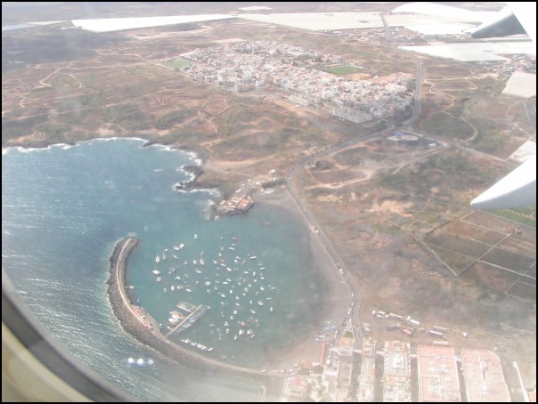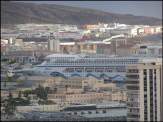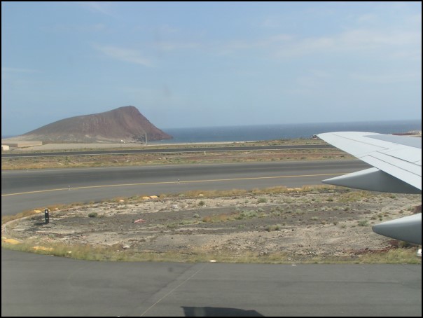Die Zeit vergeht jedoch sehr schnell, wir haben eine tolle Sicht auf die Inseln Lanzarote, Fuerteventura und Gran Canaria und landen schließlich um 17 Uhr Ortszeit auf dem Flughafen Teneriffa. Schnell sammeln wir unser Gepäck ein und begeben uns auf den Weg zu den Transferbussen, wo uns unsere Koffer mit den Worten: "Die sehen Sie sowieso nicht mehr." abgenommen und in einen anderen Bus, als wir sitzen, eingeladen werden. Die Koffer werden von hier aus automatisch zum Schiff und dann sofort auf unsere Kabine gebracht. Ein toller Service - so müssen wir uns nicht mehr damit abmühen!!