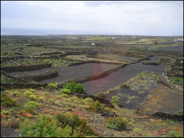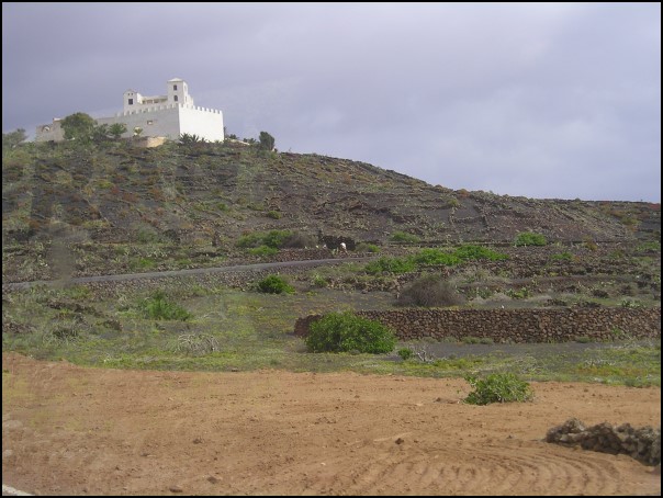 Nach einer halben Stunde machen wir uns schließlich wieder auf den Weg und fahren weiter ins Inselinnere zum Aussichtspunkt Haría. Das zweitschönste Dorf der Insel liegt inmitten des weiten "Tals der 1000 Palmen" mit seinen unglaublich akkurat angelegten Lapilli-Feldern, auf denen Kartoffeln, Kohl und Linsen gedeihen. Die Einwohner hier sind sehr stolz auf die Bezeichnung ihres Tals, befinden sich hier doch weit mehr als 1000 Dattelpalmen. Die Datteln werden jedoch aufgrund des milden Klimas nicht reif und können lediglich als Viehfutter genutzt werden.