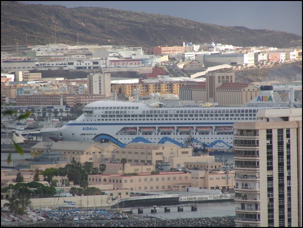 Das letzte Mal das Ablegen beobachten - da letzte Mal mit der stimmungsvollen Musik von Enya mit "Orinoco Flow" ... Mir kommen fast die Tränen. Das Ablegen haben wir fast jeden Tag beobachtet und irgendwie hat es etwas Besonderes an sich. Wir können es nicht beschreiben; man muss es selbst erleben. Doch das Feeling ist einfach wunderbar, wenn man sich immer mehr vom Hafen entfernt, auf's weite Meer zusteuert und die Leute am Hafen zu Winken beginnen. :-)) Jetzt hier in Gran Canaria erleben wir zudem noch einen richtig schönen Sonnenuntergang mit. Wie romantisch!