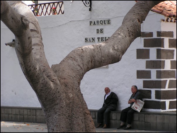 Nach dieser "Biologie-Stunde" geht's schließlich weiter in das niedliche kleine Dörfchen San Andrés, was uns auf Anhieb begeistert und wohl auch einer der schönsten Orte der Insel ist. Wir schlendern die engen Gassen entlang, erblicken immer wieder tolle typisch kanarische Häuser und gelangen schließlich zum Hauptplatz, der sehr sauber wirkt. Er ist wunderschön angelegt mit einem kleinen Brunnen in der Mitte und tollen Blumenarrangements. Direkt dahinter befindet sich die hübsche Kirche San Andrés. Auch die umliegenden bunten Häuser gefallen mir; alles sieht so fröhlich aus. Es gleicht einer Ortschaft aus dem Bilderbuch.