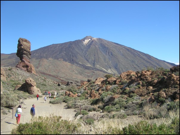 Am Roques de García, einem großen Aussichtspunkt, halten wir schließlich noch einmal an und steigen hinauf auf die Felswände. Von hier oben hat man eine tolle Sicht auf den Teide und hinunter auf den Llano de Ucanca, die größte Ebene der Teide-Cañadas. Die Sonnen strahlt und hüllt die Landschaft in ein wunderbares Licht. Doch kalt ist es noch immer – kein Wunder auf knapp 3.000 m Höhe. Als ich so auf den Teide blicke, erinnere ich mich an die Erzählungen meines Vaters, der hier vor Jahren auf den Teide gestiegen ist. Das muss ein Abenteuer gewesen sein ...