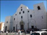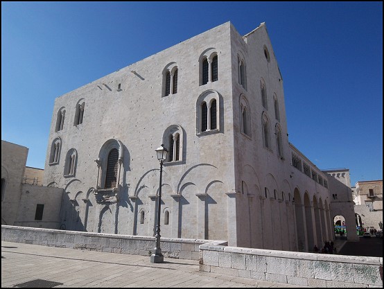 Gleich im Anschluss erreichten wir wieder die nicht weit entfernte Wallfahrtskirche Basilica San Nicola. Nun waren alle Busgruppen weg und wir allein; jetzt konnten wir uns die Kirche ungestört ansehen. Die Basilica San Nicola ist die „Mutterkirche“ sämtlicher Normannen-Kathedralen und zu Ehren des Heiligen Nikolaus von Myra, Schutzpatron der Stadt, 1087 bis 1189 errichtet worden. San Nicolas Reliquien ruhen seither in der dreischiffigen Basilika.