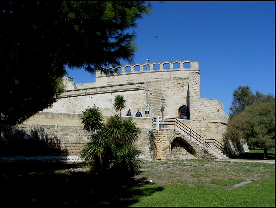 Vorbei am Teatro Piccinni und Palazzo Municipale sowie dem Palazzo del Governo erreichten wir wenig später das Kastell Svevo die Bari, eine alte Festung aus dem 12. Jahrhundert. Erbaut von den Normannen, wurde es zwischen 1233 und 1240 auf Befehl Friedrichs II. renoviert. Es gilt als herrliches Beispiel mittelalterlicher Baukunst und ist eine der meist besuchtesten Festungen der Region. Über eine Steinbrücke gelangten wir in das Innere des Kastells. (Der Ticketschalter ist hier ziemlich versteckt und auch nicht unbedingt als solcher zu erkennen.) Der Bau der Festung hat einen viereckigen Grundriss, Schutzbollwerke an den Ecken und viele Türme, die ihren eigenen Namen haben. Im Schloss befindet sich heute der Sitz des Amtes für die Denkmalpflege der Region Apulien und eine Gipsfigurensammlung.