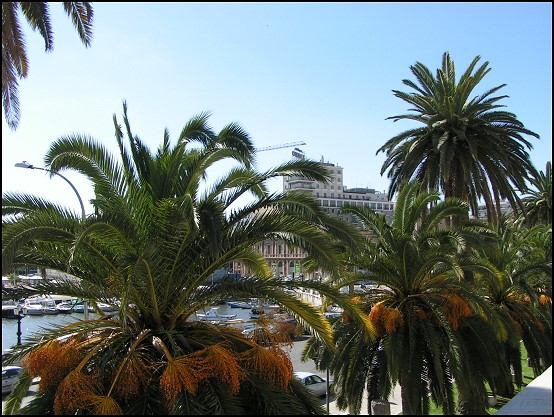 Wir ließen uns einfach treiben, spazierten auf der Mauer entlang und hatten immer wieder schöne Ausblicke auf die Altstadt. Über die Häuser hinweg konnten wir schließlich auch den Schornstein der Costa Serena erkennen; groß ist Bari ja nun wirklich nicht. ;-) Vorbei an tollen Häuserfassaden und -eingängen, die mich total faszinierten, erreichten wir schließlich den Corso Vittorio Emanuele II. Von diesem Straßenzug aus konnten wir den Porto Vecchio gut erkennen, die Yachten, die hier lagen und die vielen Palmen, die so richtig das Urlaubsfeeling schüren. Wir kamen an der Piazza Ferrarese heraus, ein schöner großer Platz mit tollen Gebäuden und einer kleinen Kirche. Dieser Platz ist – gemeinsam mit dem Piazza Mercantile – das kaufmännische und politische Herz Baris. Hier spielt sich das Leben ab; beides sind beliebte Treffpunkte der Einheimischen. Während wir so durchschlenderten, entdeckten wir einen Fischmarkt und schauten sogleich hinein. Aber außer Gemüse und Obst war hier nicht viel zu sehen; den Fisch roch man lediglich. ;-)
