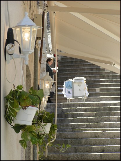 Wieder am Ausgangspunkt angelangt, schlenderten wir ganz gemütlich zurück in Richtung der Stradun. Hier brauchte ich unbedingt noch ein paar Briefmarken für die erst kürzlich geschriebenen Postkarten. Morgen ging es ja schon wieder nach Hause und wie meistens, gingen die Karten auch heute wieder auf den letzten Drücker raus. Der Kerl im Tabak-Laden staunte nicht schlecht, als ich 17 Briefmarken verlangte und fragte vorsichtshalber noch einmal nach. Der wird sich auch was gedacht haben. ;-)
