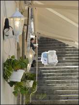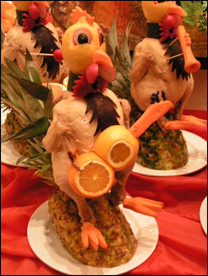 Auch heute verzichteten wir auf die allabendliche Show und setzten uns lieber wieder in unsere Lieblingsbar. Es war einfach zu interessant, den vorbeiflanierenden Damen und Herren zuzusehen und ihre Kleider zu bestaunen (die Schokoladen-Bar besitzt Straßen-Café-Feeling). Irre, wie manche gekleidet waren. Viele Italienierinnen trugen richtig tolle, glitzernde Abendkleider – teilweise sogar mit Schleppe. Aber keine Angst: Das ist kein Maßstab. Mann kann auch getrost „normale“ Kleidung tragen und Krawattenzwang gibt ebenfalls nicht. Während sich zwei von uns relativ frühzeitig verabschiedeten, harrten wir mit Michael und Martina noch bis Mitternacht aus, denn dann gab es das berühmte "Mitternachtsbüffet". Es begann im Restaurant "Vesta" im vorderen Teil des Schiffes, wo herrlichste Figuren aus Obst und Gemüse sowie aus Eis aufgestellt waren. Kleine Tiere waren nachgebastelt, ein Schiff und vieles mehr. Faszinierend, was man alles herstellen kann. Von hier aus durften wir einmal komplett durch die Schiffsküche laufen, in welchem das Büffet aufgebaut war. Leider war ich noch so satt vom Abendessen und nahm mir nicht mehr mit als einen Schokoladenkeks. ;-) Am Ende der Küche gelangten wir ins Restaurant "Ceres" (identisch mit Vesta) und konnten dort das Mitgebrachte aus der Küche verspeisen. Im Übrigen war es total interessant, einmal in den Bauch des Schiffes zu sehen und die riesige Küche zu besichtigen.
