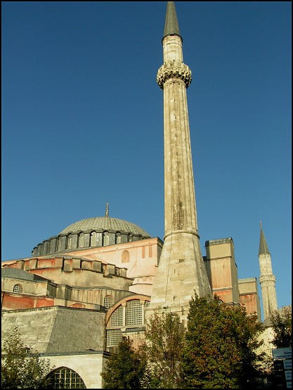 In der Hagia Sophia fanden zur Zeit des byzantinischen Reiches die Krönung der Kaiser statt. Außerdem war die Hagia Sophia damals die Hauptkirche, bevor sie im Osmanischen Reich als Moschee genutzt wurde. Seit 1934 aber wird sie nur noch als Museum genutzt. Im Mittelpunkt der Hagia Sophia steht die riesige Kuppel. Sie überspannt einen großen quadratischen Raum. An diesem Mittelbau gliedern sich mehrere Seitenräume, die ebenfalls überkuppelt sind. Die vier markanten Minarette an den Ecken des quadratischen Rundbaus erhielt die Hagia Sophia erst, als sie zur Moschee umgewandelt wurde. Dadurch erhielt sie ihre heute so markante Silhouette.