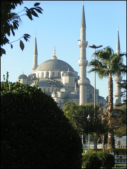 Die Blaue Moschee heißt eigentlich Sultan-Ahmet-Moschee und wurde nach dem Vorbild der Hagia Sophia erbaut. Ihre Bezeichnung als Blaue Moschee verdankt sie den blauen Wandfliesen, mit denen die Kuppel sowie einige Mauerteile ausgeschmückt sind. Die Besonderheit der Blauen Moschee: kein anderes islamisches Gotteshaus hat sechs Minarette. Lediglich die Moschee in Mekka hat sieben Minarette; das siebte wurde allerdings erst angebaut, als feststand, dass die Blaue Moschee sechs bekommen würde.