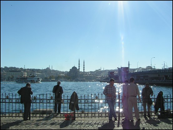 Als wir die Galata-Brücke erreichten, mussten wir schmunzeln. Links und rechts reihten sich Fischer aneinander, jeder hatte nur knapp 3 m Platz für sich und Hunderte von Angeln waren ausgeworfen. Ein witziges Bild. Ich frage mich nur, ob die Fische hier nicht irgendwann aussterben, wenn hier tagtäglich in solchen Massen geangelt wird?