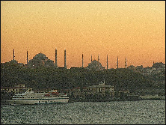 Bereits auf 7.00 Uhr – es war noch stockdunkel – liefen wir in den Hafen von Istanbul ein. Natürlich stand ich mit Kamera bewaffnet wieder auf dem Balkon und konnte bereits die Umrisse einiger Moscheen erkennen.