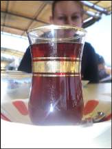 Nachdem wir plötzlich inmitten von Tausenden von Schwämmen und anderen Haushaltsartikeln standen und uns die Gegend nicht mehr ganz so geheuer war, verdünnisierten wir uns ganz schnell wieder und entdeckten plötzlich ein etwas unscheinbares, verstecktes Lokal. Es sah gemütlich aus und so machten wir es uns auf der knappen Terrasse bequem. Damit hatten wir wohl wieder eine gute Wahl getroffen, denn auch in diesem Lokal aßen ausschließlich Einheimische zu Mittag. Immer ein gutes Zeichen für mich; denn dann schmeckt es mit Sicherheit. ;-) Wir bestellten wieder typisch türkische Speisen und beides war superlecker. Die türkische Küche hat mich wirklich schnell überzeugt!