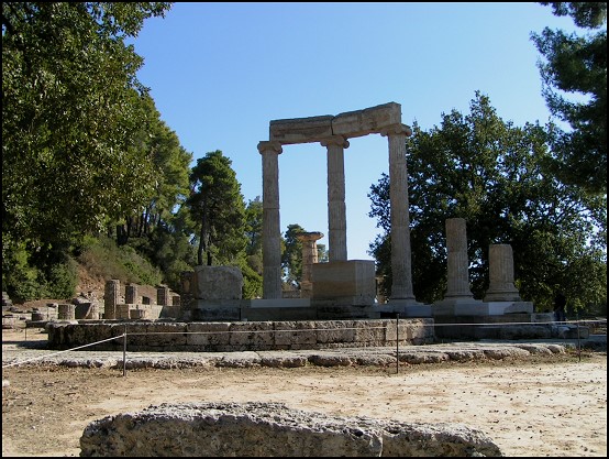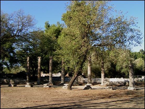 Olympia war die Stadt der alten Olympischen Spiele, welche alle vier Jahre von den Griechen gefeiert wurden. Es war keine richtige Stadt, sondern mehr ein Heiligtum mit Gebäuden, in welcher die Spiele zu Ehren der Götter durchgeführt wurden. Olympia enthielt viele Schätze griechischer Kunst, wie Tempel, Monumente, Theater, Statuen und Spenden von Marmor. Der heilige Bezirk war eine ebene Fläche von ca. 200 m Länge und 177 m Breite.