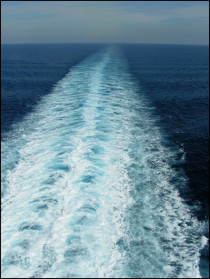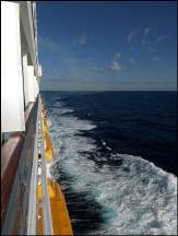 Die Hapag Lloyd "Europa" lief vor uns aus – ganz zum Ärger unseres Kapitäns. Er war wohl so sauer darüber, dass „er“ erst nach der "Europa" fahren durfte, so dass er erst gar nicht hupte. Die "Europa" hupte uns drei Mal an, doch unser Kapitän ignorierte ihn. Lustig, wie schnell man einen Italiener verärgern kann.