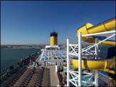 Doch gegen 16 Uhr ertönten schon wieder die Alarmzeichen; Zeit für die Seenotrettungsübung. Alle Reedereien sind nach internationalem Recht verpflichtet, innerhalb der ersten 24 Stunden eine entsprechende Rettungsübung durchzuführen. Ebenso sind alle Passagiere dazu verpflichtet, teilzunehmen. Also schnappten auch wir uns die bereits schon am Vortag zurecht gelegten Rettungswesten, warfen sie uns über und gingen auf unsere Musterstation B, die auf unserer Costa-Karte verzeichnet war. Hier herrschte allerdings totales Chaos. Alle Passagiere wurden der Größe nach sortiert und in 5er-Gruppen aufgestellt. Also im Ernstfall wäre das zu umständlich. ;-) Abgesehen davon hielt sich sowieso kaum jemand daran. Wir standen dort eine gute Viertelstunde, bis wir anhand der Kabinennummer gecheckt wurden und nach ausgiebiger Erklärung der Sicherheitsmaßnahmen schließlich auch wieder auf unsere Kabine durften. Immer wieder ein nettes Erlebnis.