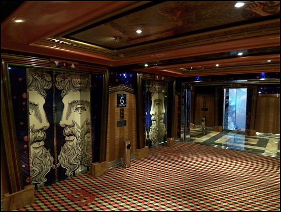 Auf unserem Streifzug durchs Schiff verliefen wir uns ständig! Die Wege waren auch irrsinnig weit. Immerhin misst das Schiff 290 m Länge! Endlich kamen wir bei der Kreditkartenregistrierung an, stellten dann aber fest, dass wir die erforderlichen Unterlagen dazu in der Kabine liegen gelassen hatten. Na super! Also alles noch einmal zurück … ist ja auch nur am ganz anderen Ende des Schiffes. ;-)