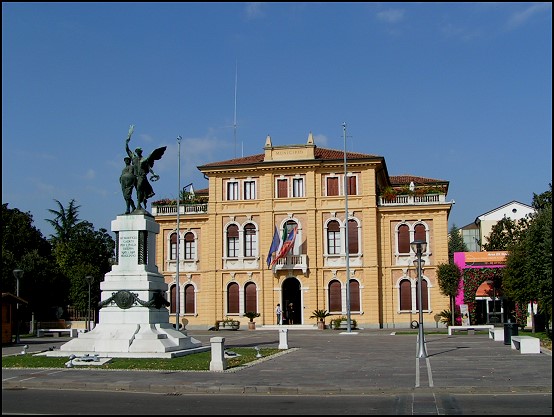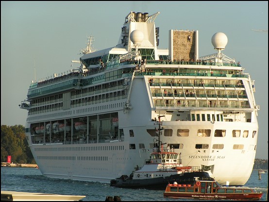 Ein wenig frisch gemacht und eine kurze Meldung Richtung Heimat geschickt, machten wir uns auf einen Spaziergang durch die Stadt. Mogliano Veneto ist nicht wirklich riesig, aber sehr sauber und einladend. Vorbei an der Kirche und dem Rathaus und entlang diverser Einkaufsstraßen waren wir nach einer guten halben Stunde aber auch schon „durch“ und so holten wir unser Auto und fuhren nach Venedig. Vorbei an traumhaften Villen erreichten wir nicht mal eine Viertelstunde später die Brücke, die in die Lagunenstadt führt. Von hier aus konnten wir bereits zwei Kreuzfahrtschiffe im Hafen von Venedig erkennen: Die MSC Orchestra und die RCCL Splendour of the Seas. Toll!