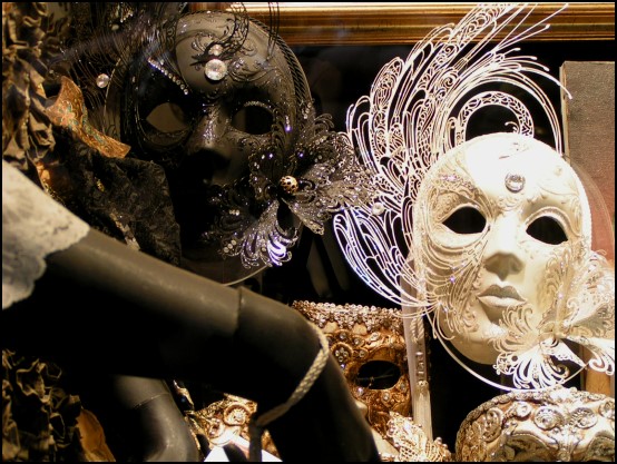 Auf unserem Streifzug durch Venedig kamen wir an einigen kleinen Läden vorbei, die wunderschöne Karnevalsmasken anbieten. Nicht die gängigen, die für Jedermann, sondern wertvolle Kunstwerke inkl. Kleidung von Kopf bis Fuß. Herrlich!