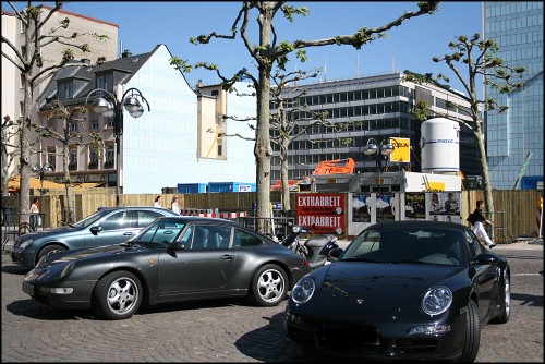 Unseren Rundgang hier gestartet, ging es schließlich in Richtung der Freßgass. Dieser Straßenabschnitt zwischen Opernplatz und Börsenstraße heißt eigentlich Große Bockenheimer Straße, ist unter diesem Namen aber wohl kaum jemandem bekannt. Und die Straße macht ihrem Namen alle Ehre: Hier reihen sich Restaurants und Feinkostläden aneinander, zwischendrin nette kleine Cafés und vereinzelt Boutiquen. Toni war gleich ganz begeistert von diesen wirklich schönen Restaurants und enttäuscht, dass es das bei uns nicht so gibt. Und ähnlich wie auf der Maximilianstraße standen auch hier in dieser etwas "edleren" Gegend eine Vielzahl von Porsche herum. Irgendwie ist das hier wohl nichts besonderes mehr. Sieht ja schon fast langweilig aus! ;-)