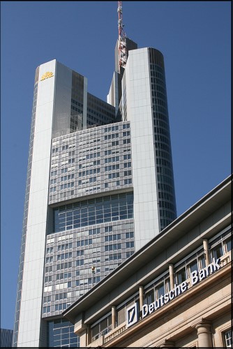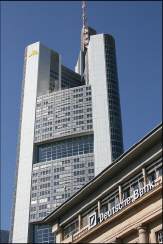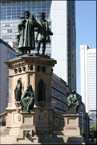 Vorbei am Börsenplatz und dem Rathenauplatz gelangten wir zum Goethe-Platz mit seinem Goethe-Denkmal. Von hier aus konnten wir bereits die bekannte Commerzbank und weitere Hochhäuser sehen. Ein etwas eigenartiges Bild – Alt und Neu so nah beieinander!
