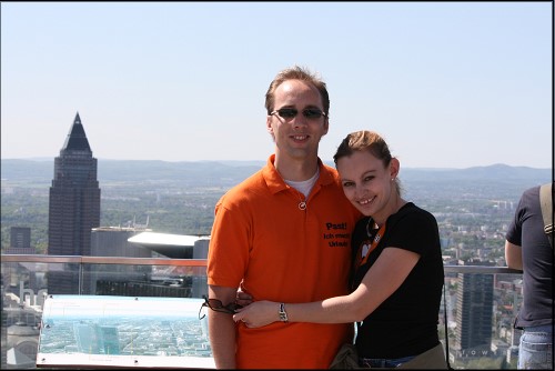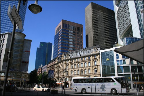 Von den Beiden am Hotel abgeholt, kamen wir bereits eine halbe Stunde später in Frankfurt an und Toni und ich sahen zum ersten Mal die berühmte Frankfurter Skyline; fuhren kurze Zeit später zwischen die Hochhäuser hindurch. Für uns natürlich ein kleines Highlight, denn in Bayern gibt es so etwas schließlich nicht. ;-)